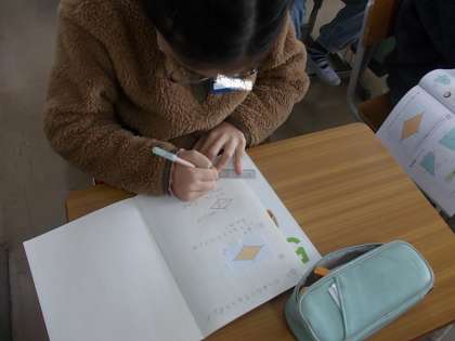 今日は、「ひし形の面積の求め方を考えよう」に取り組んでいました。
