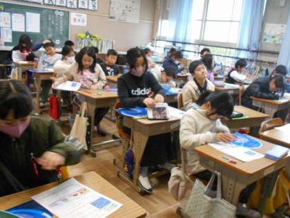 (中・下)次回、理科「冬の夜空 冬の生き物」のテストをする前に復習プリントで定着の確認をしています。