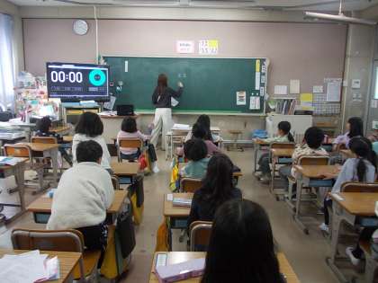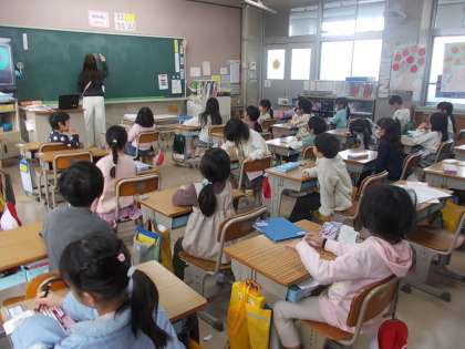漢字テストを返してもらいました。間違いの多い字を先生がみんなに紹介していました。