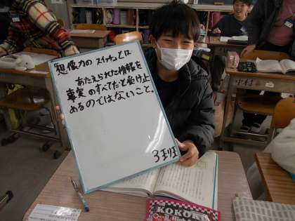 めあては「想像力のスイッチとはどのようなことか本文の言葉を使ってまとめよう」です。