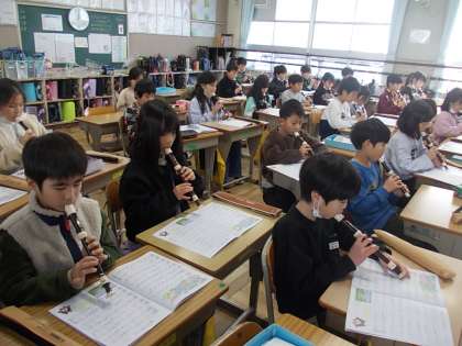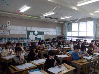 1組の音楽です。「エーデルワイス」をリコーダーで吹いています。
