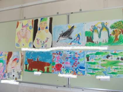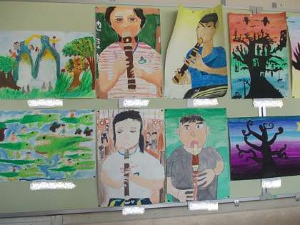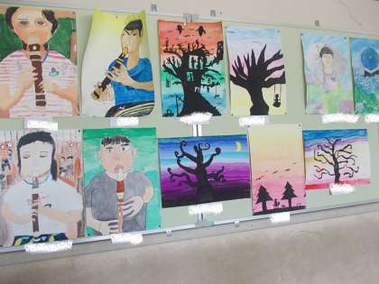 今年度は、各学校で堺市こども市展を行っています。本校は、昇降口(児童の靴箱)前の廊下に作品を掲示しています。学習参観などでご来校いただいた時に、ご覧ください。よろしくお願いいたします。