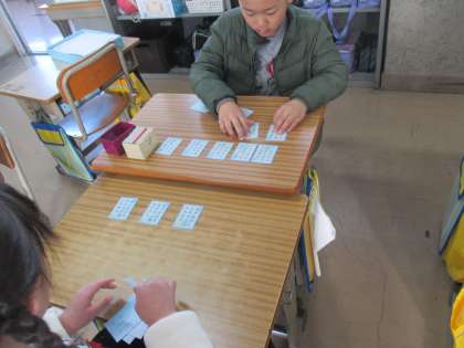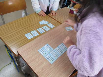 百人一首のふだをならべています。