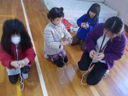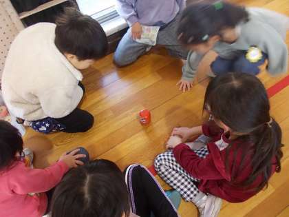 だるまおとし、コマ回しをしています。