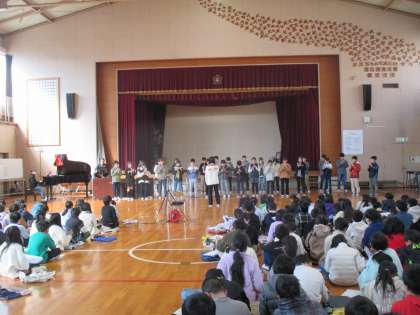 上の写真は6年3組のリコーダーで、曲は「あおげばとうとし」「もののけ姫」です。