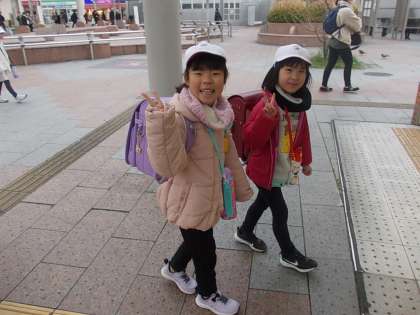 最後の1日、がんばりましょう。中百舌鳥駅の登校のようすです。