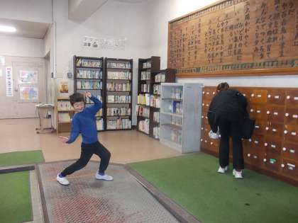 1年生は担任の先生を玄関まで迎えに来てポーズをしてくれました。