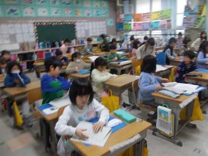今日のお手紙を配ってもらい連絡ファイルにしまっていました。そのあと、ノートなどの配りものをみんなでしています。