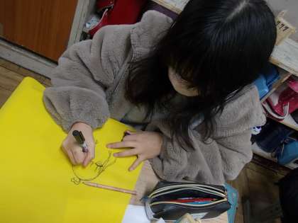 今日のめあて、「卒業制作をかんせいさせよう」に取り組んでいます。