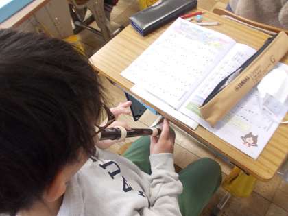リコーダーで♪「聖者がまちにやってくる」の練習をしていました。