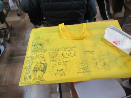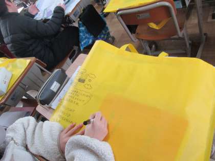 2組です。図工の制作物の袋を配付し、お互いのメッセージを書き込みました。
