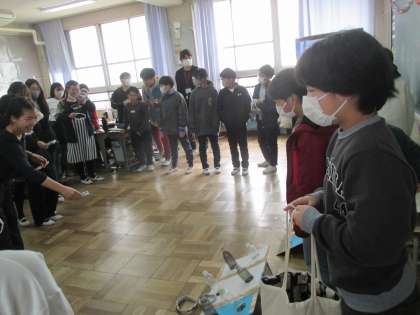 3組のお別れ会です。雑学クイズや輪投げを行っています。
