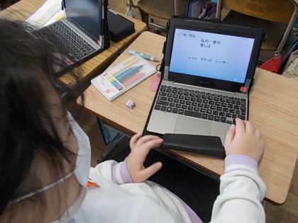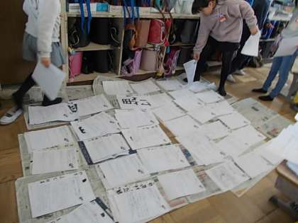 終わった子や順番を待っている子は、配付物を分けていたり、タブレットをしたりしていました。