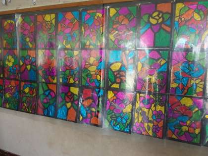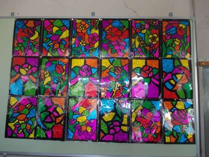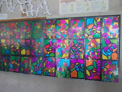 3年生の作品、ステンドグラスが美しいです。