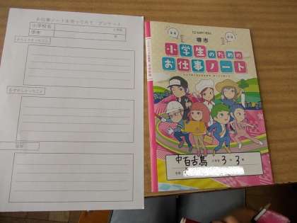 堺市から配られた「お仕事ノート」を使って学習しています。