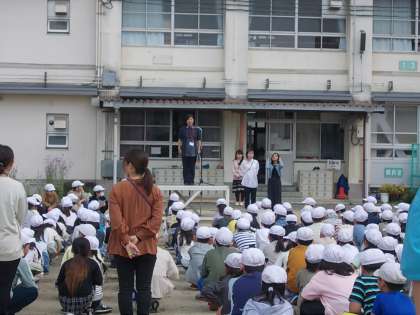 そのあと、校歌を歌い、代表委員会の朝のあいさつ、校長先生から新しく来られたNSの先生の紹介、校長先生からお話、研修主任の先生から「話し合い名人」のお話がありました。