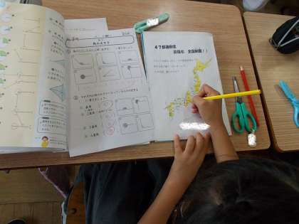 「角の大きさ」の学習プリントにチャレンジしていました。