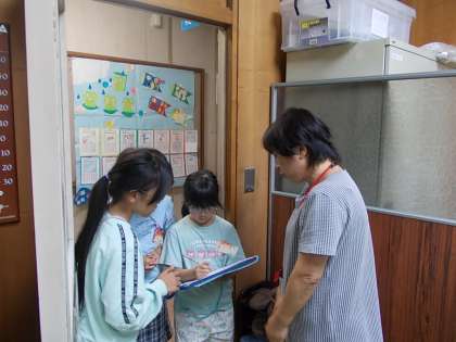 15分休憩に、教頭先生や校長先生にインタビュー調査をしています。