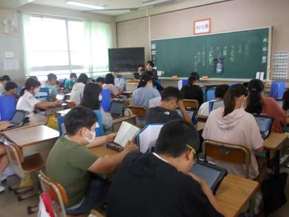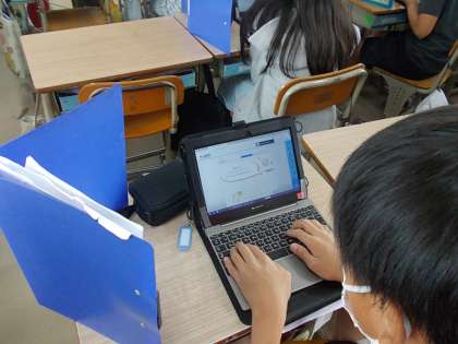 テストに取り組んだ後、「静かに過ごす」というめあてで、タブレットや読書に取り組んでいました。