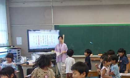 1年生の音楽では、タンタンタンのリズムであそびましょうという単元においてリズムに合わせて歌ったりして学習していました。