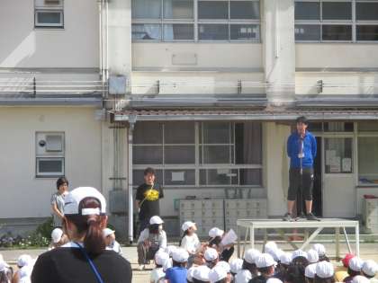 全校朝礼では、校長先生から時間の大切さについてお話がありました。