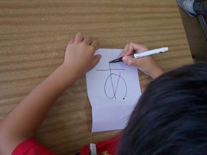 カードにひらがなの一文字を書いて、下の欄に説明を書いていました。
