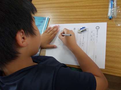 今日は硬筆です。「にょう」に挑戦です。「しんにょう」「えんにょう」を丁寧に書いていました。