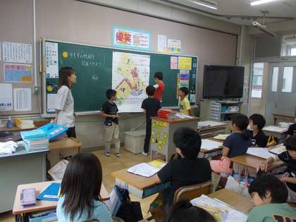 2組の社会の時間です。