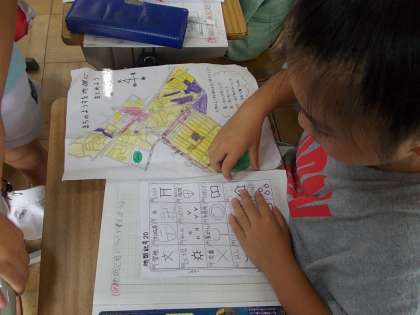 今日は、「なかもずの地図を完成させよう」に取り組んでいました。調べた町のようすを地図にまとめています。