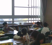 今日は、「読んで感想を書こう」に取り組んでいます。先生がお話を読んでいます。