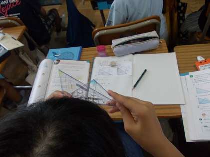 今日は「三角定規の角を調べていろいろな角を作ろう」に取り組んでいます。
