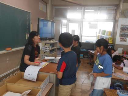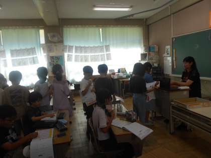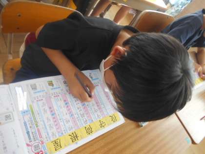 新出漢字「荷」「守」「役」を学習しています。かけたら先生に見てもらいます。