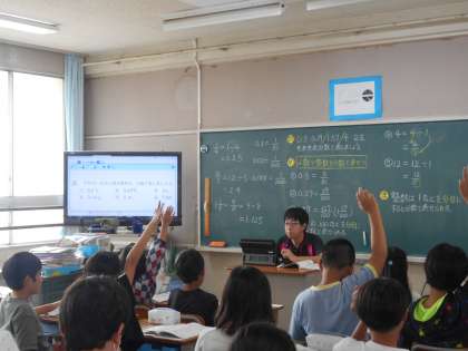 2組の算数では、小数や整数を分数で表す学習をしていました。