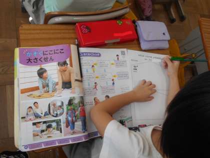 今日は、「わたしの1日をふりかえろう」に取り組んでいます。