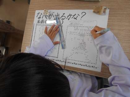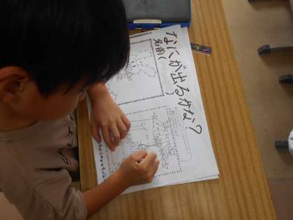 「なにがでるかな」点つなぎのプリントワークに取り組んでいます。
