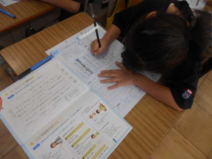 今日は、「展覧会の作品カード」「セーフティ教室の作文」のワークシートを丁寧に書いています。