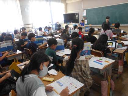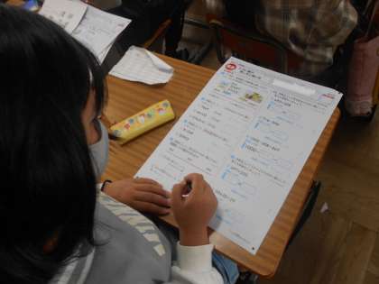 「概数とあらわし方と使い方」のテストに取り組んでいます。