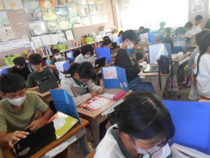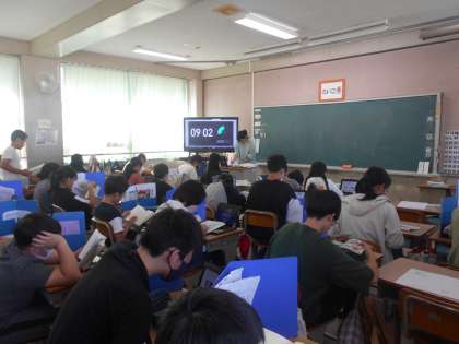 テストに取り組みました。終わったのでタブレットや読書に取り組んでいます。