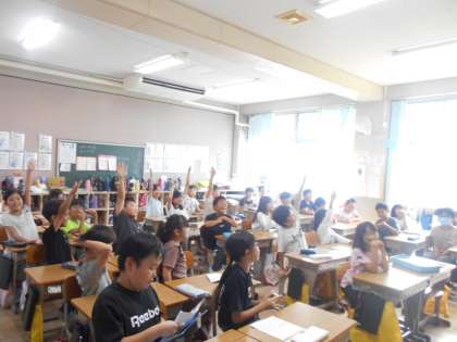 「1分で話すことが理想だけど、4分以内に話せるといいね。」時間を計りながらスピーチをしています。