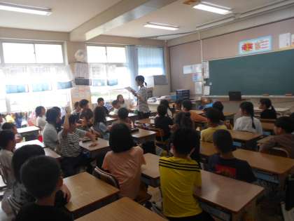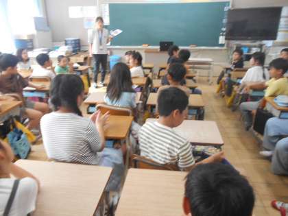 先生が席替えを発表していました。みんな真剣に聞いています。これから席を移動します。