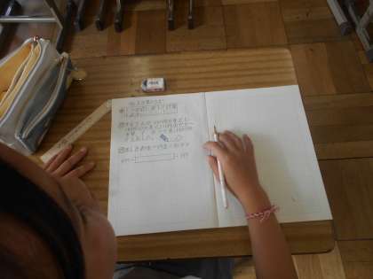 今日のめあては「1つの式に表して計算しよう」です。