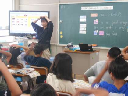5年生の外国語では、ゲームを通していくつかの職業に関する単語を学習していました。