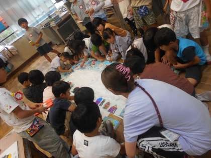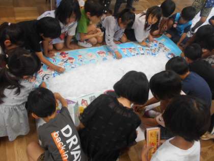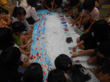 みんなで国語で学習している「くじらぐも」を作成していました。