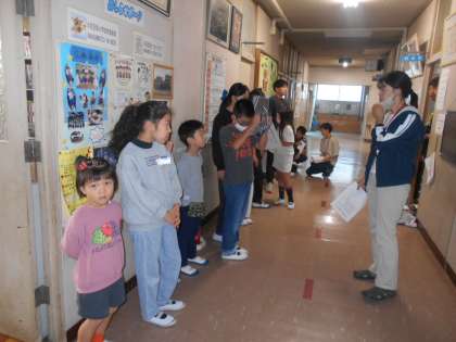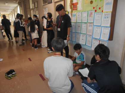 司会の児童会や表彰される子どもたち、各委員会の子どもたちが、集まって準備をしています。