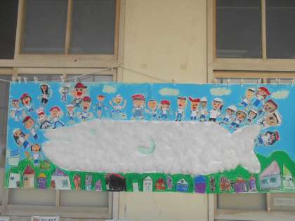 1組の「くじらぐも」が完成しtました。廊下に掲示してありました。