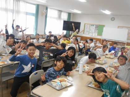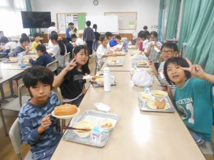 みんな、今日のメニューの「あげパン」がうれしそうでした。