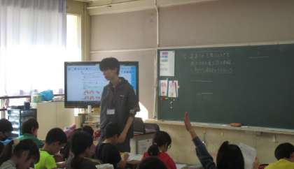3組の算数では、2枚の三角定規を使って平行な線を引く学習をしていました。