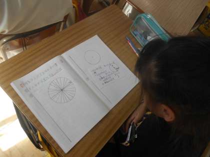 フリーハンドで書いた円からコンパスを使って、円を書きます。