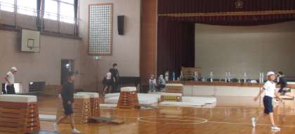 2組の体育では、跳び箱で台上前転などの技の練習をしていました。