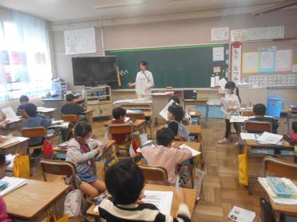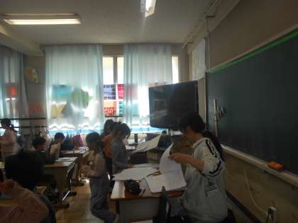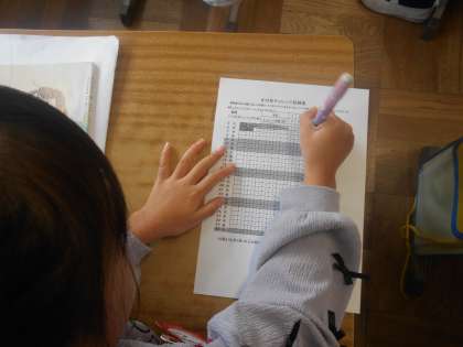 「かけあしチャレンジきろく表」に走った周数を記入しています。
